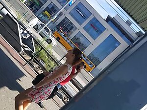 Walking behind this girl on the stairs was the best decision that voyeur ever made. He manages to keep his candid camera down low and he caught her sweet ass in upskirt. That playful kind of thong is barely keeping her pussy in there and it vanishes inside her ass crack. You'll get to see her cute face later in the video, when he rushes in front of her.