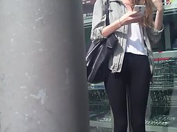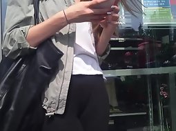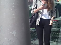 I don't know who was she waiting there in front of the store but I enjoyed starring at her body features a lot. She had tight black pants that made her tiny cameltoe pop a bit and her face was very beautiful.