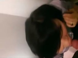 I can't even blame this guy for shaking a camera while getting his cock sucked by such a cute little girl. She works his pole hard and when he cums in her mouth she is happy to show if off. She does it with a big smile.