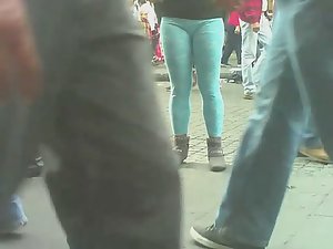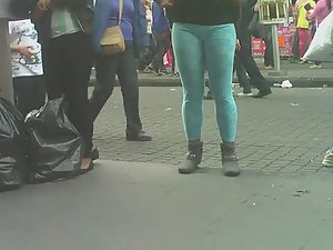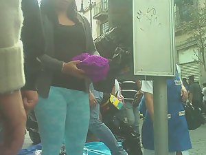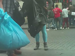 Voyeur took a walk through the street where a bunch of gypsies work as street vendors and he noticed a pretty looking gypsy milf in very bright tights. Since tights are so noticeable, her pussy bulge is easily spotted too and that is why the voyeur creeps around her to get an even closer look.