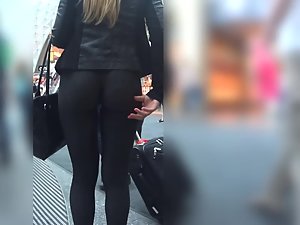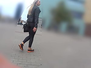 I don't even know if those are leggings or tight jeans but I do know they go deep inside of her ass crack, like an ultimate wedgie. This hot blonde sure knows how to turn her round ass into center of attention to all the horny boys that she'll walk by on the street. You'll get to see her provocative ass and wedgie up close and personal.