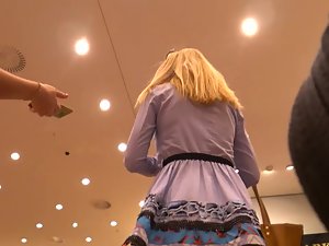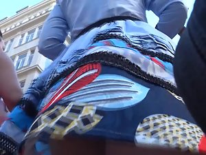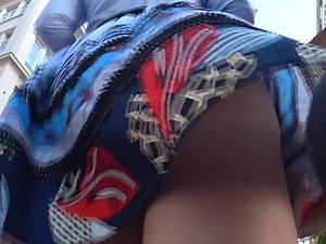 When a voyeur spots such a fancy skirt, he just has to follow the sexy woman in it. With that being said, he saw a lot in her upskirt and then some. Her tiny white thong barely covered her pussy bulge and there was a visible lips slip situation found under her attractive skirt, as well as her fine ass that must not be neglected.