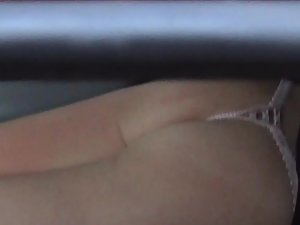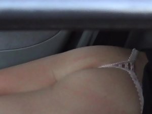Desolate parking lot by the highway, and voyeur took a stroll to stretch his legs. He peeks inside one of the cars and he notices a super sexy girl relaxing and resting from a long drive. She got too hot and undressed to her panties, thinking that there is no way anyone would notice it in such a lonely place. Long peeping through her car window resulted in a great view of her hot ass and pussy slip inside that transparent lace thong. She is just too erotic for such a random place.