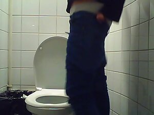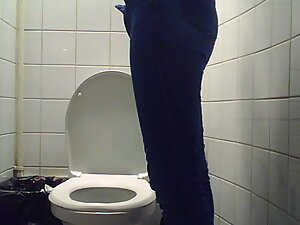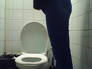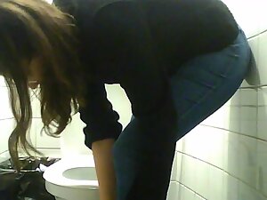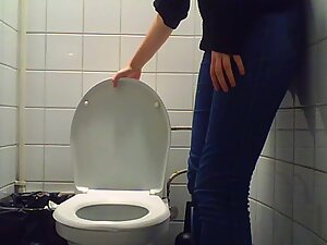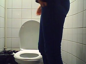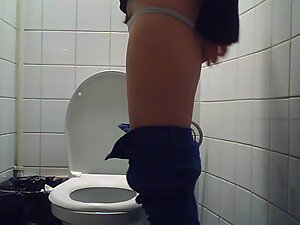 She works at the nearby laboratory and she is still in her lab coat when hidden camera catches her in a public toilet....