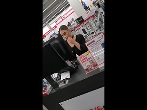 She looks bitchy and bored while she is working and that only adds up to her sex appeal. Voyeur is walking through the store and checking her ass in jeans, up close and personal, and she even made eye contact with the candid camera without suspecting anything.
