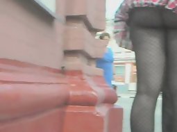 She is young and a bit alternative and this voyeur followed her around the street. She didn't even realize that the wind lifted her skirt up and her delicious round butt was fully exposed. She had sexy pantyhose on.