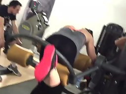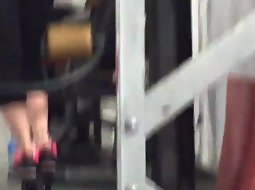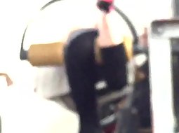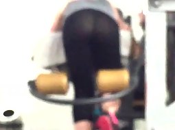 Voyeur caught this sexy babe in the gym while she was doing an exercise for her legs that required her to be slightly bent over the machine. That pose reveals her tights are transparent and that she got a thong.