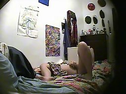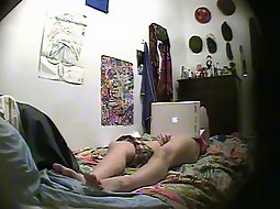 I just wanted to take a look at her naked body so I planted a hidden camera in her room. I was more than suprised to see her reach for her pussy while surfing the internet. She had a mind blowing orgasm it seems.