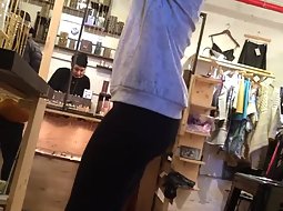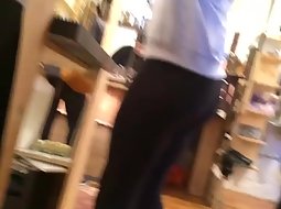 A voyeur was standing really close to her and he did a nice shot of her beautiful face and soon followed with secretly filming her firm ass in tight black pants. That thing is out of this world, insanely arousing.
