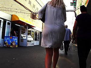 This is a voyeur video that you'll want to watch very closely, and pay lots of details to sexiness that bursts out of this hot woman. Firstly, her simple dress is nearly transparent under the proper light and you'll see how her white thong and tight ass cheeks become fully visible through it. Secondly, voyeur managed to stand right next to her in the train and he captured a great upskirt view from down below. Thirdly, she looks absolutely stunning even from the front side, as you'll see soon.