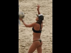 Very short voyeur video but a very good one. Voyeur zooms in on smoldering hot beach volleyball player, while she serves the ball and then waits for it again. She bent over with her hands on her knees and it looked amazing to watch her tight muscular body in such a pose. She got very strong abs and an amazing muscular ass. I'd say she probably does crossfit or something along with beach volleyball.
