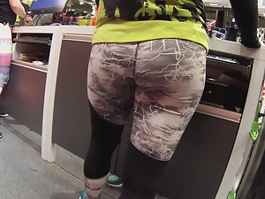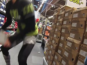 This hot woman is actually working in this sports shoe store and I couldn't get enough of her ass in those lightning tights. I even asked her for some assistance in picking the right sneakers, just so I could additionally film her marvelous firm ass.