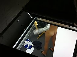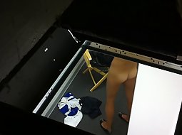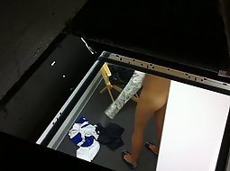 I must say, it was well worth it to spend an hour in the ventilation pipes just for a chance to see and film that magnificent ass and her hot pussy. She was just getting dressed and had no idea I'm way up there.