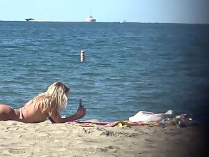 Everything that this hot girl does on the beach is sexy and she isn't even trying it. She is dancing, snapping instagram pictures, twerking her hot ass and even doing a headstand. Voyeur is relaxing on his beach spot behind her and he keeps recording all of her activities, without her knowledge. Her energy is overwhelming and her sexiness is off the charts. She got an epic ass that looks spectacular when she dances and wiggles it around.