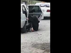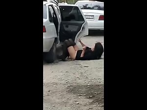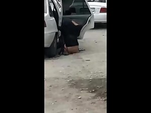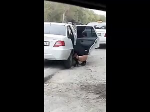 Looks like the driver stopped his car because she urgently had to pee but the guys in other car instantly turned into voyeurs to film it. She looks sexy with her ass exposed while she crouches to pee and it gets funny when she falls down after she finishes. She jumps in the car with her naked ass on the back seat.
