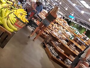 Such long tanned legs can't be ignored in the supermarket. She is wearing platform sandals that make her look even taller and voyeur is following her for as much as he can. Her shorts are kind of loose but it is noticeable that a very nice ass is hiding in there.