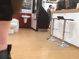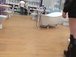 This is what wacky couples do and who can blame them, as it presents the ultimate teasing foreplay you can have. The guy follows his hot wife in a furniture store and she flashes a buttplug for his enjoyment.