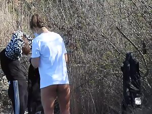 Voyeur started recording these two hot friends in the moments when they were about to leave this riverside beach and then a priceless moment happened. Hot brunette looked around and decided she doesn't feel any shame to reveal her naked ass while changing into her regular clothes. Voyeur caught her perfect naked ass with a candid camera.