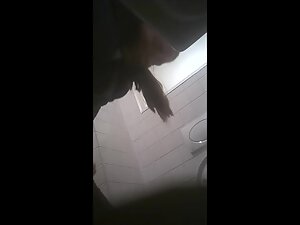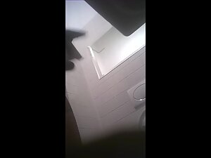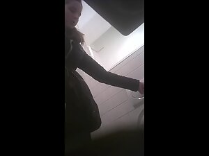 When her pantyhose goes down and she bends down to pee, you'll see what a pretty shaved pussy she got. She takes a piss and makes a grumpy face while doing so. She wipes off thoroughly, still not knowing that all of it is caught on hidden camera.