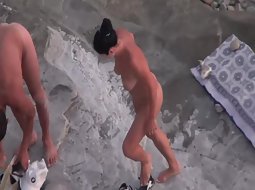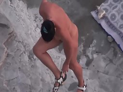 Voyeur caught this hot couple as they were relaxing on a naturist beach and it seemed like the guy brought his penis pump to play around with while he was there and his lady even helped him do that thing.