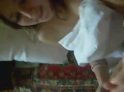 She is very cute and even more shy to show of her blowjob skills while her boyfriend films her. Step by step and he talks her into kissing his dick, sucking it and even cums in her mouth. She looks cute with full mouth.