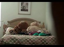 I always like filming her with hidden cameras all over the apartment, because I know my sister is bombastic hot. Here she does her nails, fresh out of shower, just a small towel on her.