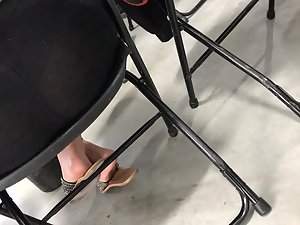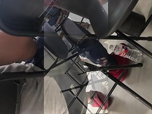 Sitting behind this girl in class will be a guarantee that you will not learn anything today. You will not be able to stop looking at her entire body, starting from her sexy feet all the way to her epic ass in leggings and that thong that peeks through the fabric. Voyeur made sure to videotape the priceless sexiness of the moments he spent right behind her back.