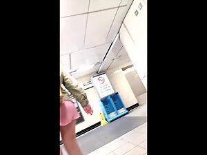 It is almost like voyeur has a sixth sense or a hunch that this colorfully dressed girl will have a very hot upskirt. He caught her from the front and immediately went to follow her on the stairs, just to see up her short dress. Her sweet ass and black thong are not disappointing.