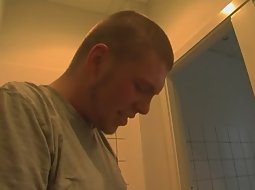 This charming young slut seems to be very happy with what she does. Meaning, she is very happy when she gives a blowjob in the bathroom while the other guy films it and then they fuck her right there.