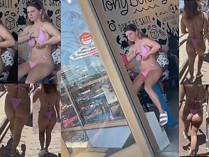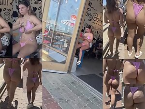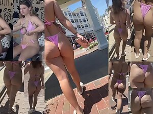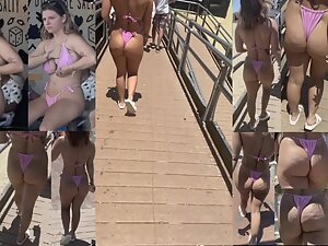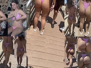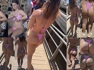 Voyeur even put a specific soundtrack while following this slutty girl by the beach. Her pink bikini shows off her big bubble butt and tattoos and it makes her look like some kind of cheap porn star. You'll see this beach slut from every possible angle.