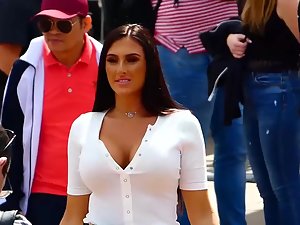 There is an aura of smugness and bitchiness when this sexy trio of girls is together. All three of them are sex bombs, each in her own way, and they are parading the street like they own the town. They are making a whole bunch of selfies and enjoying their own ways of fun, not knowing that a voyeur is enjoying it too. Their cleavages and tits are open for inspection by voyeur's camera.