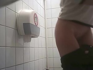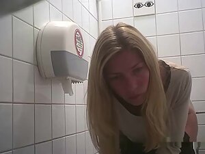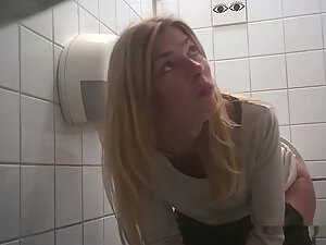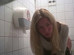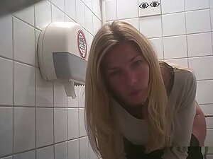 First you'll see her yummy naked ass and then you'll see a closeup of her pretty face when she bends over to pee. Hidden cam caught all of this hot blonde in the public toilet, even her amazing shaved pussy.