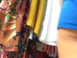 Lucky voyeur stumbled on an incredible moment when this exquisite girl stood on tip toes to get some clothes on the market. That also means that her perfect ass was on full display for that brief moment. Her shorts squeeze her young ass cheeks so nicely that you'll be able to imagine her naked, with ease. Too bad that the crowd was too big and it made following her for a longer video next to impossible.