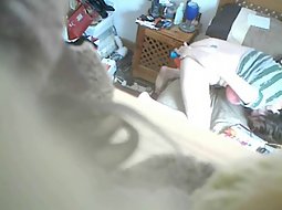 My sister is a bit slutty, you can probably tell that by her tramp stamp tattoo but she would be embarrassed if she knew I filmed her masturbation with a hidden camera. She almost broke her neck for that orgasm.