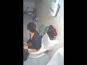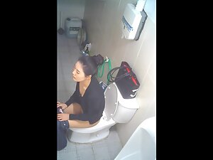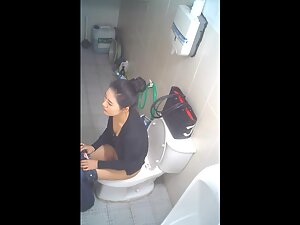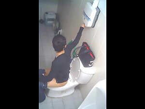 This asian girl is very fast to sit down on the toilet seat and even faster to pull her panties back up but we still get to spy on some interesting glimpses of her ass and pussy. Hidden camera caught her peeing and wiping off in a public toilet.