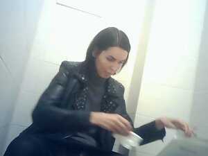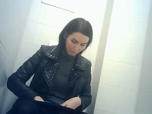 Spying on beefy pussy of elegant woman at toilet