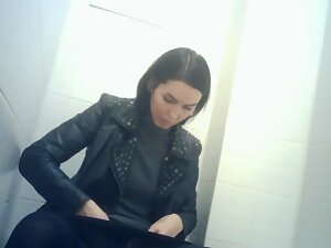 This attractive dark haired woman looks classy and sexy even when she is sitting in an unflattering pose, at the public toilet. Hidden camera caught her good looks and more importantly, her pussy. Seems like her vagina is a bit beefy but totally smooth and clean shaved. You'll see her hot pussy right before she pulls her panties and pantyhose back up.