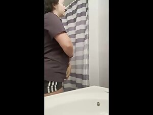 She is like a dream for every fan of big girls and we can thank her horny cousin for spying her as she undresses and enters the shower cabin. She got some tattoos on her upper body, if you'll even be able to look away from her huge naked butt.