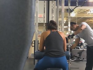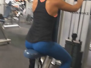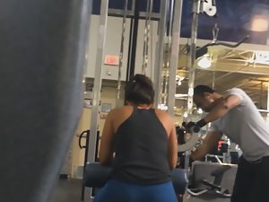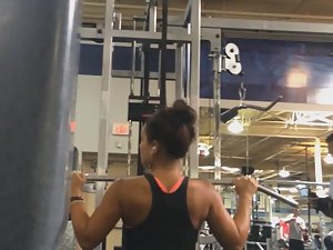 Spying on sexy strong woman in gym