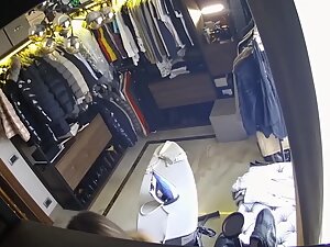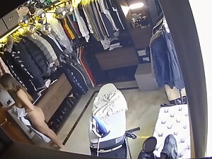 This hot young housewife got herself a rich husband and you'll know how as soon as you spy on her naked. Hidden camera caught her banging body fully exposed while she checks herself in the mirror, in a room that is full of her branded clothes. She irons a white skirt and slowly gets dressed, without knowing that she is caught on camera.