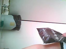 Hidden camera caught this sexy chinese girl taking a piss in the public toilet and you can notice how a strong stream leaps from her hairy pussy. Her legs are spread so hidden cam had a nice view on all of it.