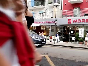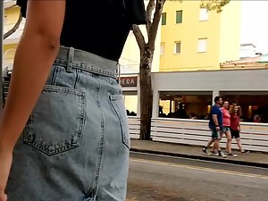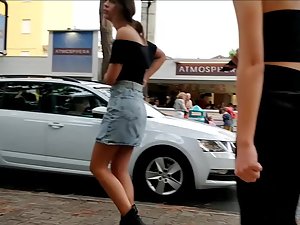 Both of these friends are attractive but the one in black tights really showed off what she got. Her ass cheeks are tightly squeezed in those leggings and they wiggle in a very nice and firm way when she walks. It is the kind of ass wiggling that means she got a rock hard firm ass.
