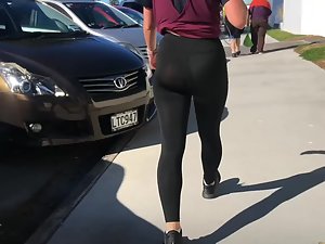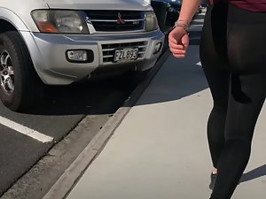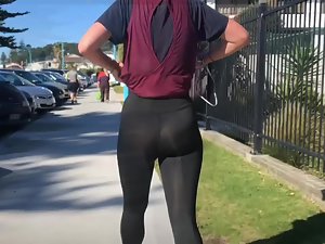 Maybe someone would call the transparency of these tights a flaw but we'll call it a feature. It is a sunny day and sunlight makes this dear girl's tights become transparent. Voyeur walks behind her and he can practically see her butt cheeks and sexy thong under the tights.
