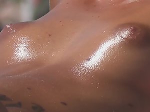 Voyeur zoomed in so close on this tattooed girl's topless tits that you'll feel like you can lick her nipples through the screen. You'll see that her smooth tattooed skin is oiled up and sweaty and she'll never even know that you were so close to her puffy nipples and small breasts.