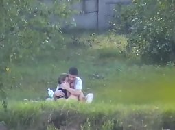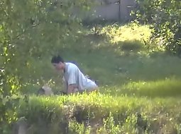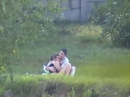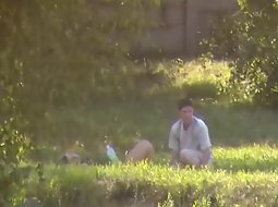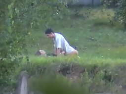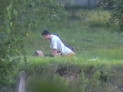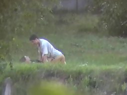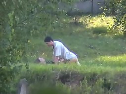 Voyeur had a nice view in front of him so he even zoomed in. It was obvious these teens are fucking in the grass like rabbits and the boy was pumping the girl really fast. When she gets up you'll see her pussy.