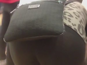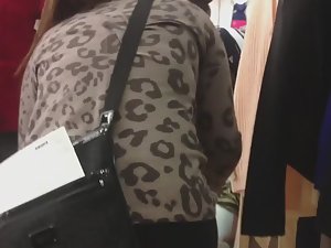 You know, it's rather clumsy to try on boots. She was trying to bend over to try them without sitting, and just so happens I was behind her. I saw her sweet ass in front of me as tights got overstretched and her thong was in full view.