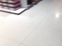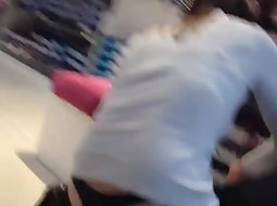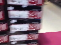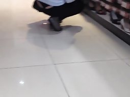 This sexy babe was crouching and looking for the right size of the shoes she wanted to try out in the shoe store and she was completely unaware that her thong popped out on her back. A voyeur had to film that.