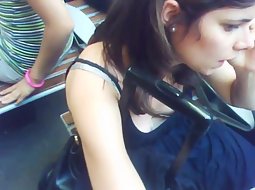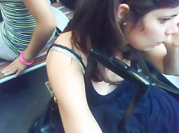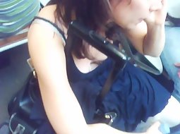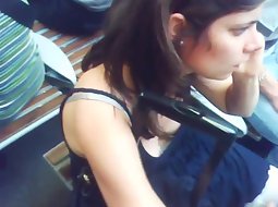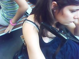 Voyeur was standing close to a cute girl that talked on her phone and he took his time to peep into her downblouse to see those sweet tits she got in there. She was talking on the phone and didn't notice it.