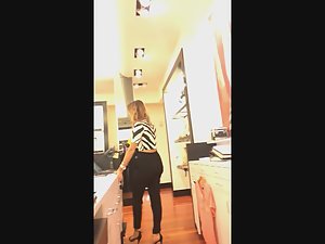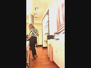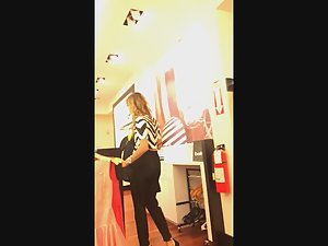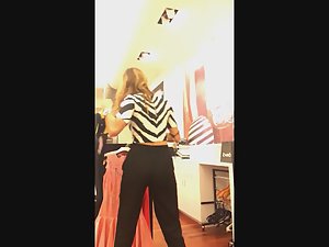 I really wanted at least a quick candid video of this elegant store worker. I managed to do it with a little trick. I told her I want a specific size of one jacket and she went to look for it. Meanwhile, I was peeping on her sexy body in those baggy pants and high heel stilettos. She is really something special and I'm sure you'll agree she is the sexiest store clerk you saw in a while.