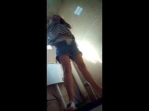 This asian girl got a very pretty face, a hot petite body and more importantly, a delicious hairy pussy with a nicely trimmed bush of pubes. Hidden camera caught her when she crouched down to pee and we had a full view of her hairy vagina once she stood up.